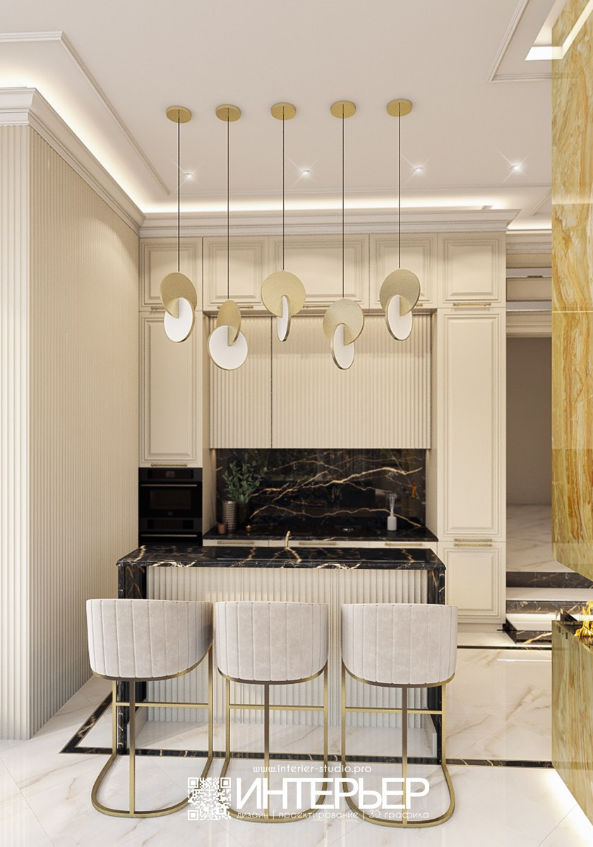 - Заменили подвесные светильники над остров на более простые по форме и материалам для более легкого мытья.