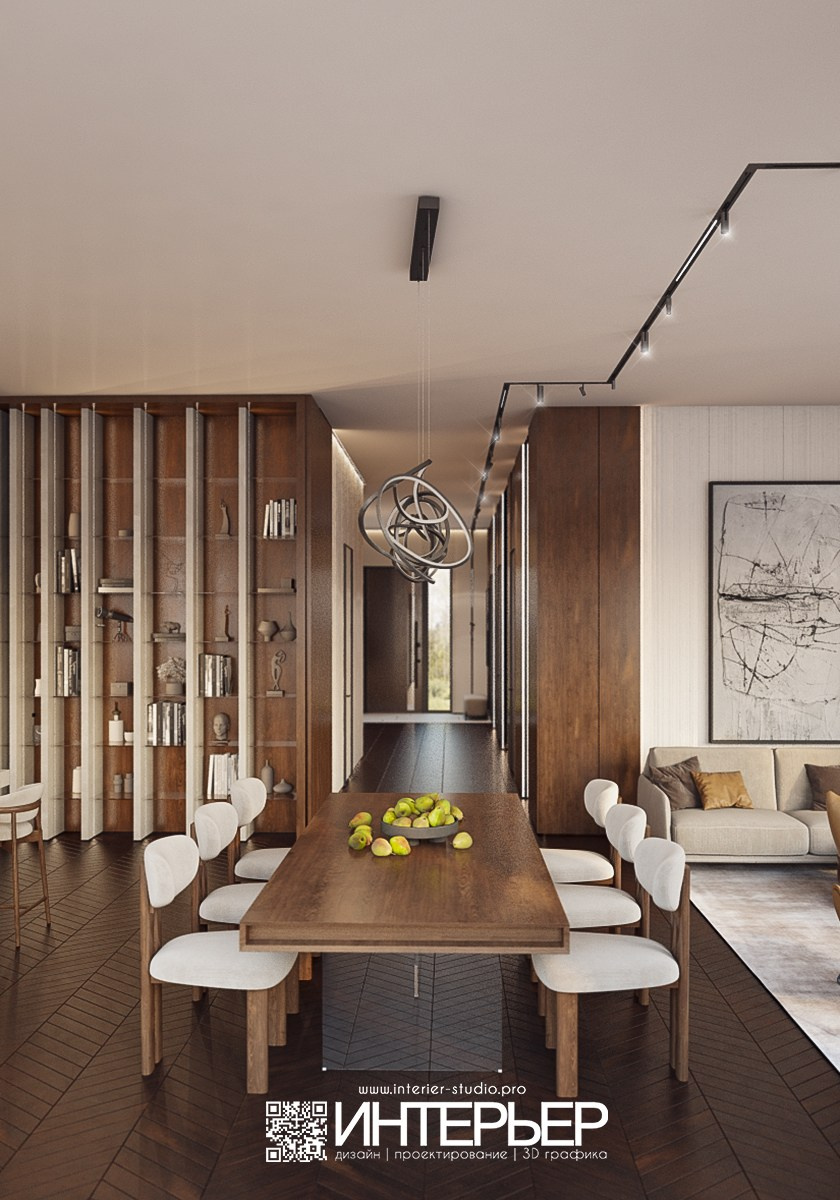 — убрали окно слева от камина, добавили там встроенные полки, открытые и закрытые