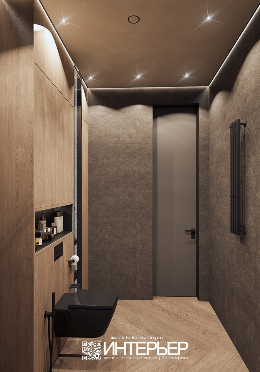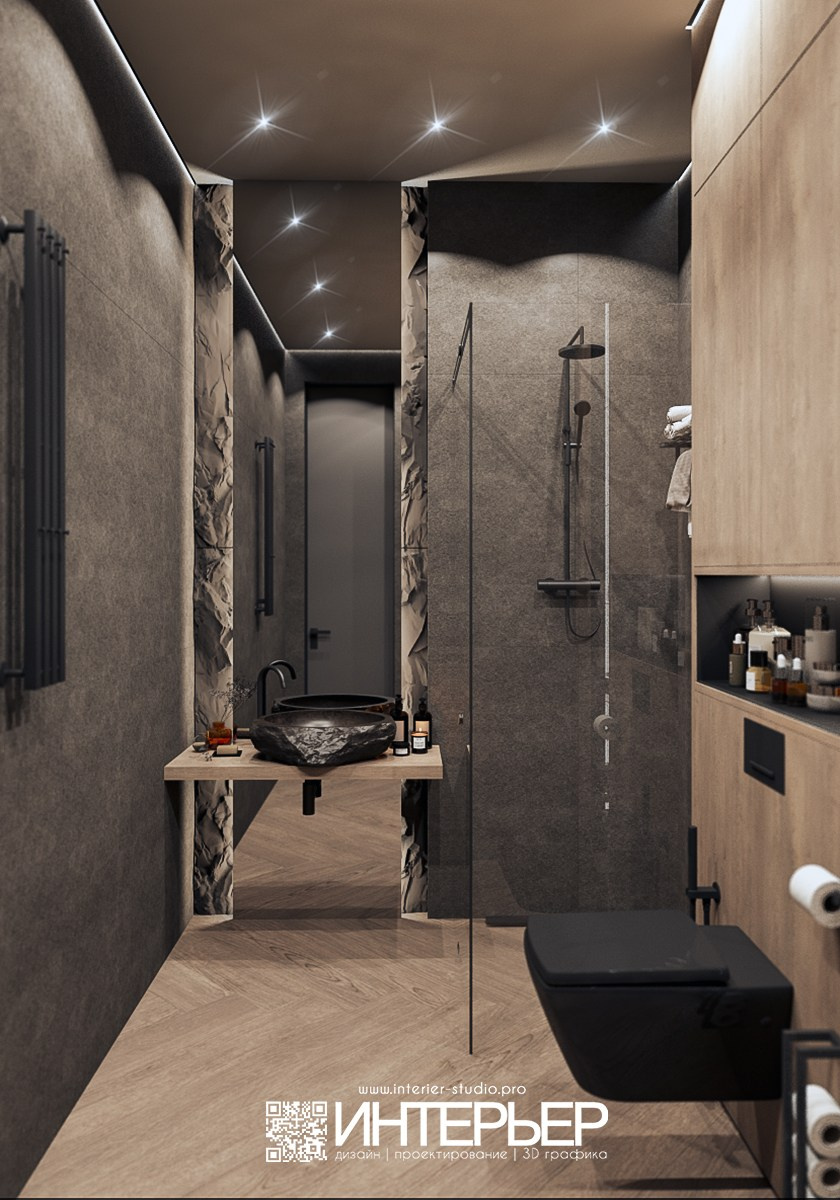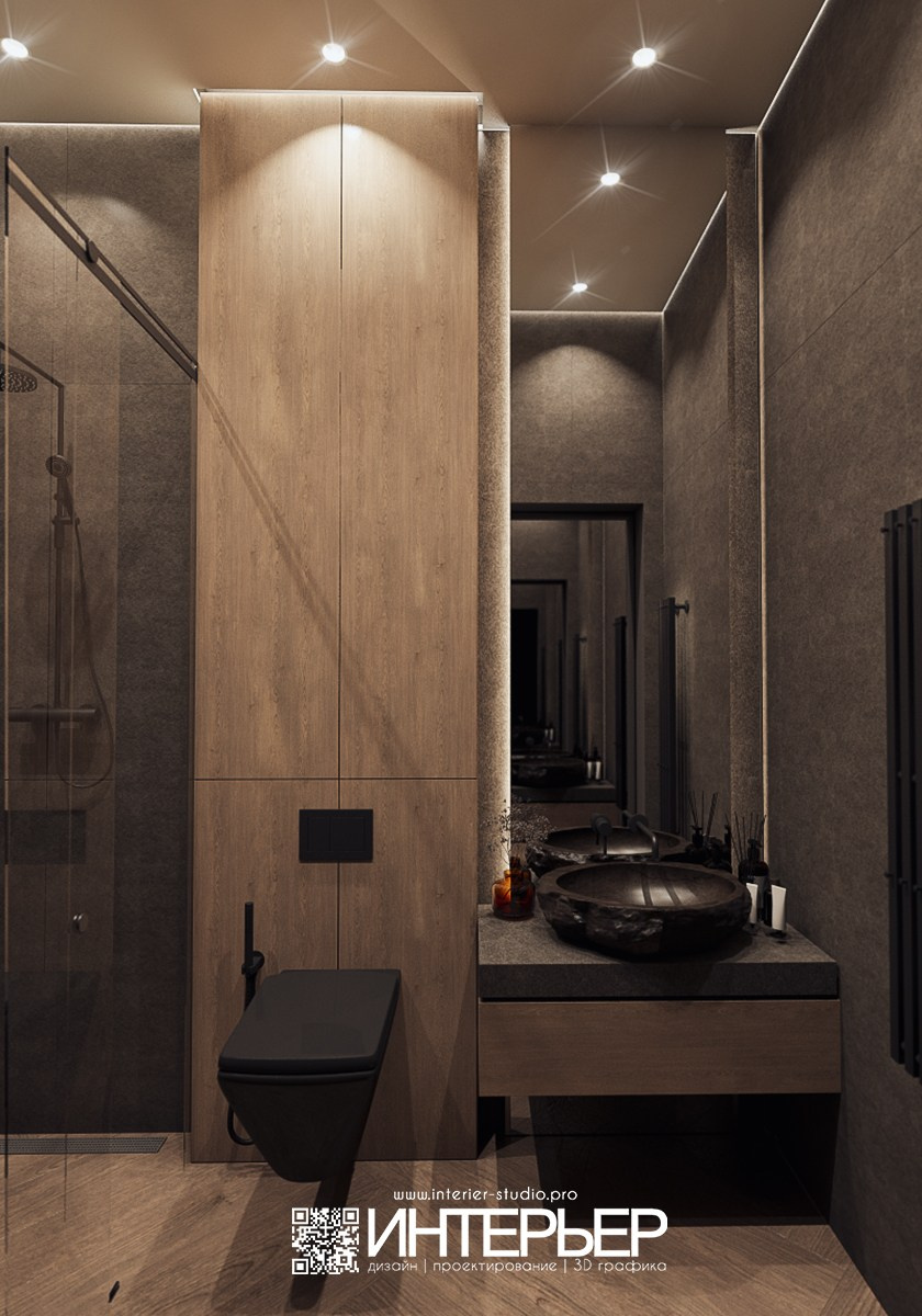 Проект выполнен в современном стиле с использованием тёплой, уютной палитры бежево-серых оттенков в сочетании...