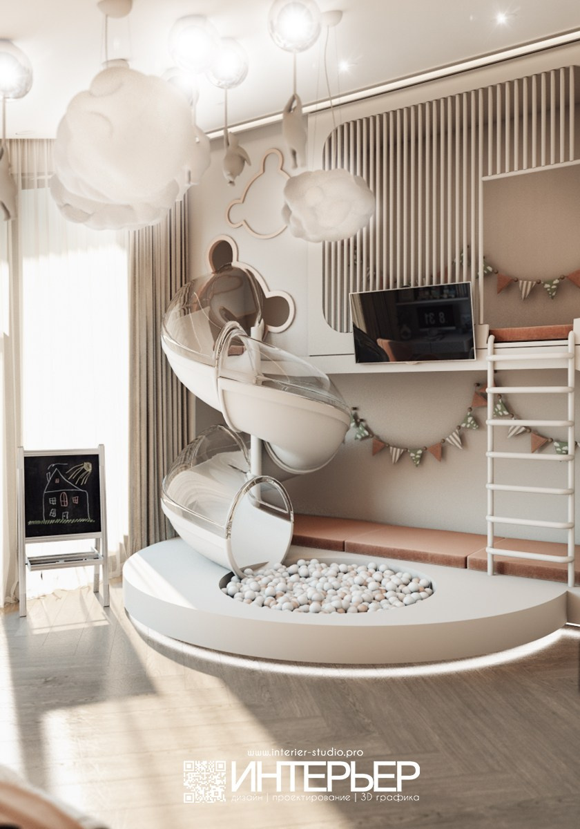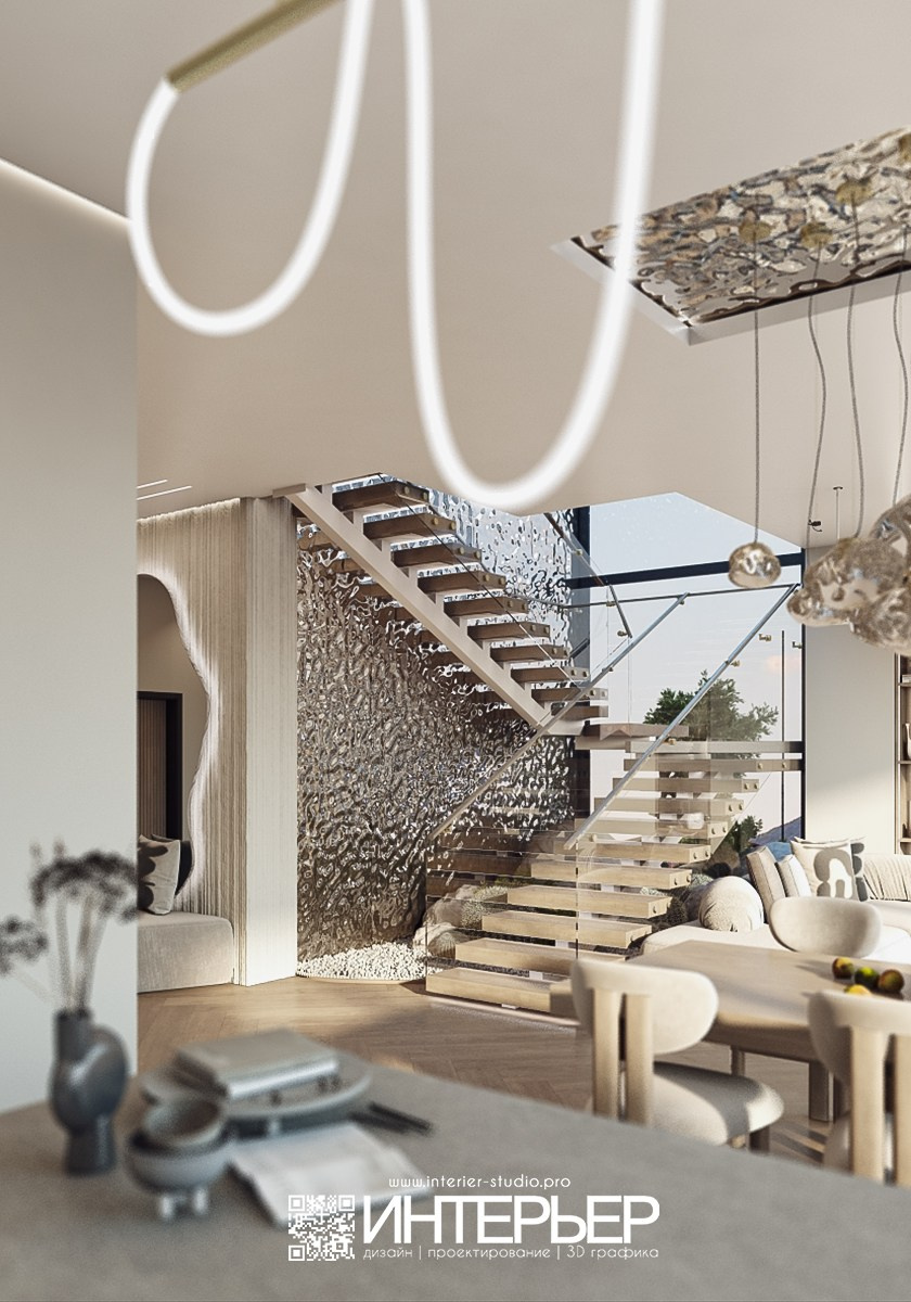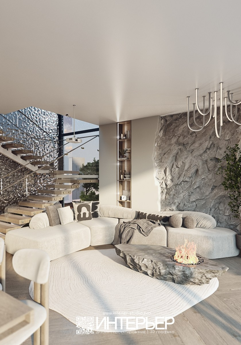 Светлая, воздушная визуализация интерьера дома в стиле шале, идеально вписывающегося в живописный район Кисловодска....