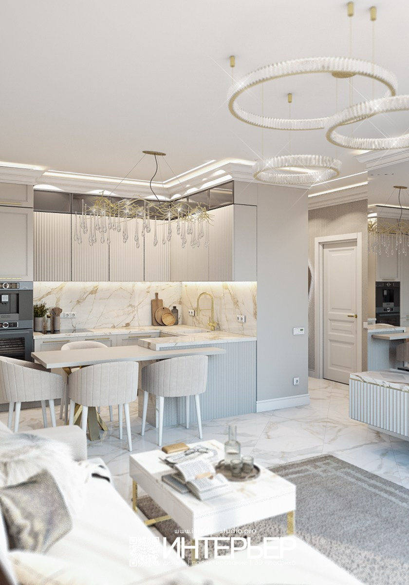 Гостиная, кухня и прихожая