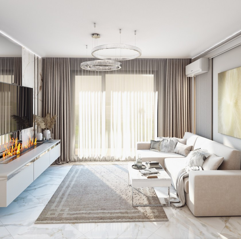 — в гостиной-кухне другая конфигурация острова и стола у него;