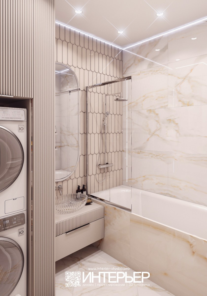 — в ванной другой керамогранит на полу и стенах, другая раковина;