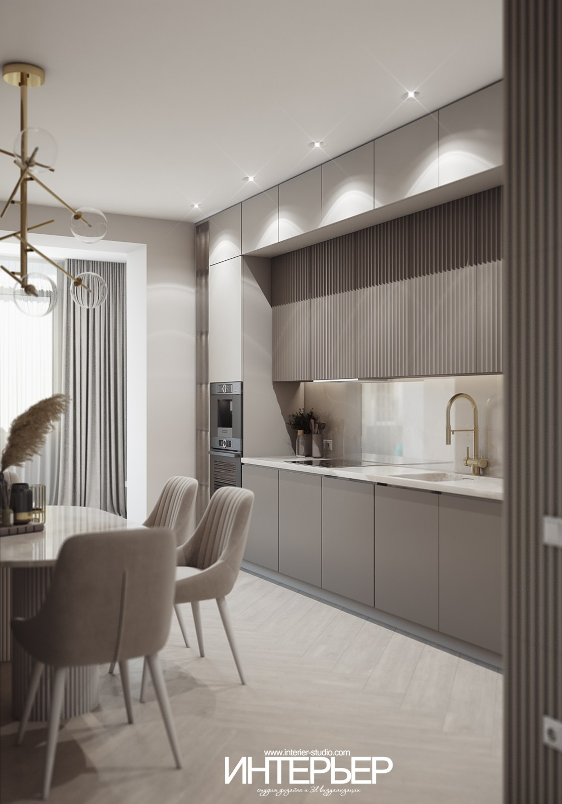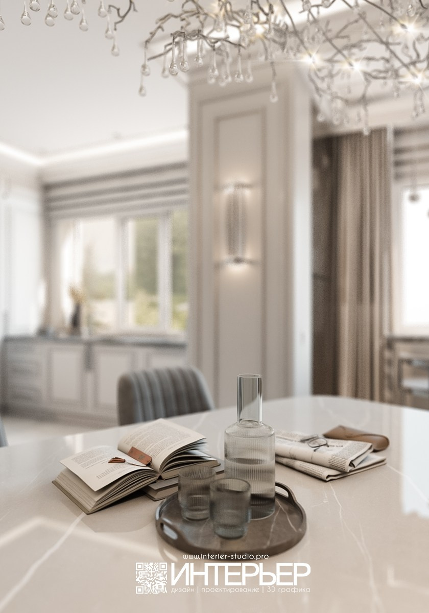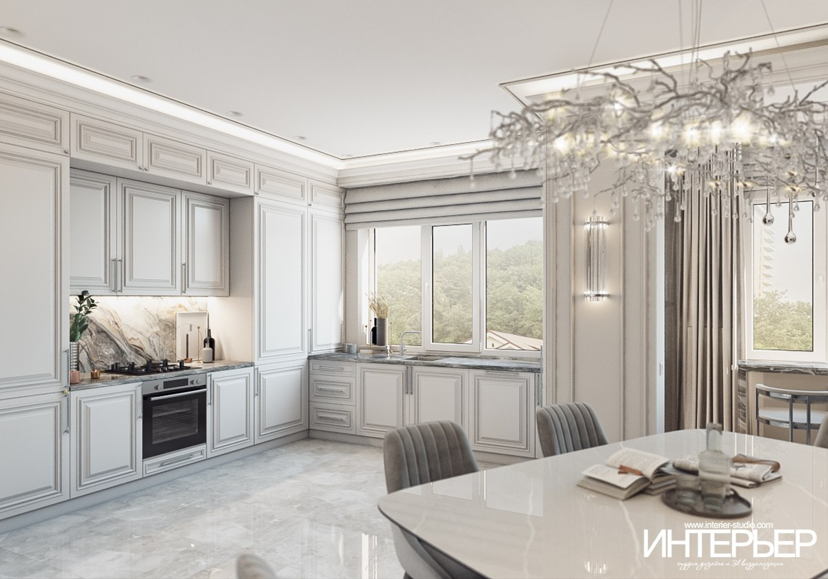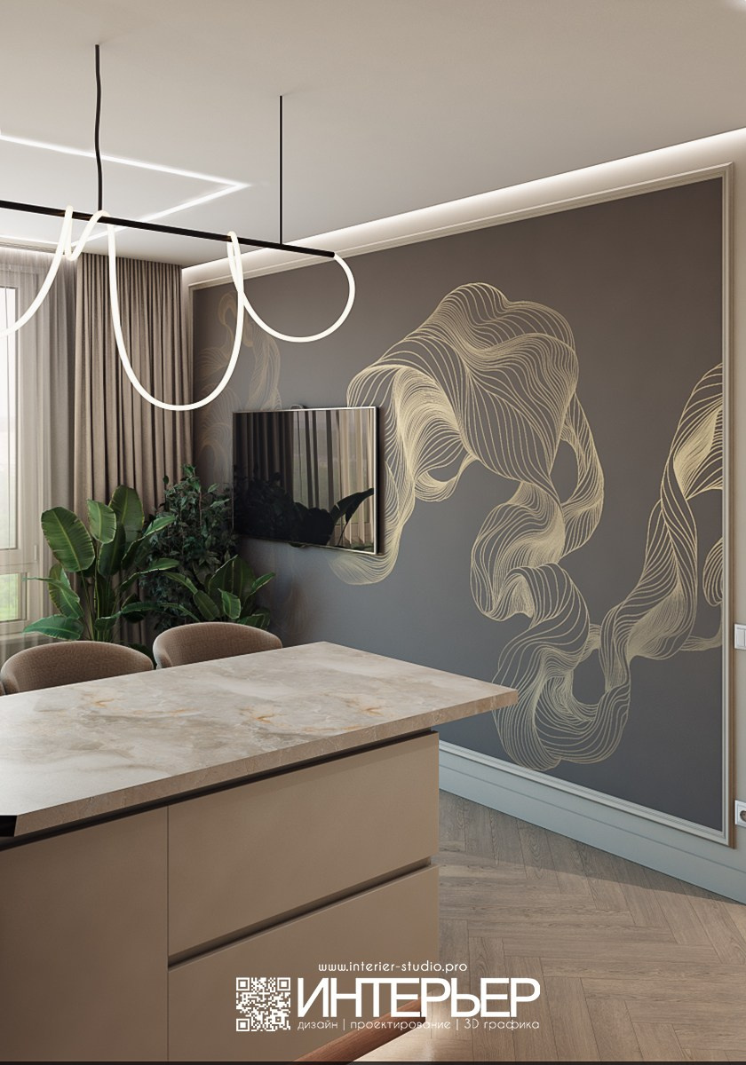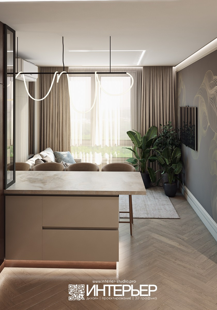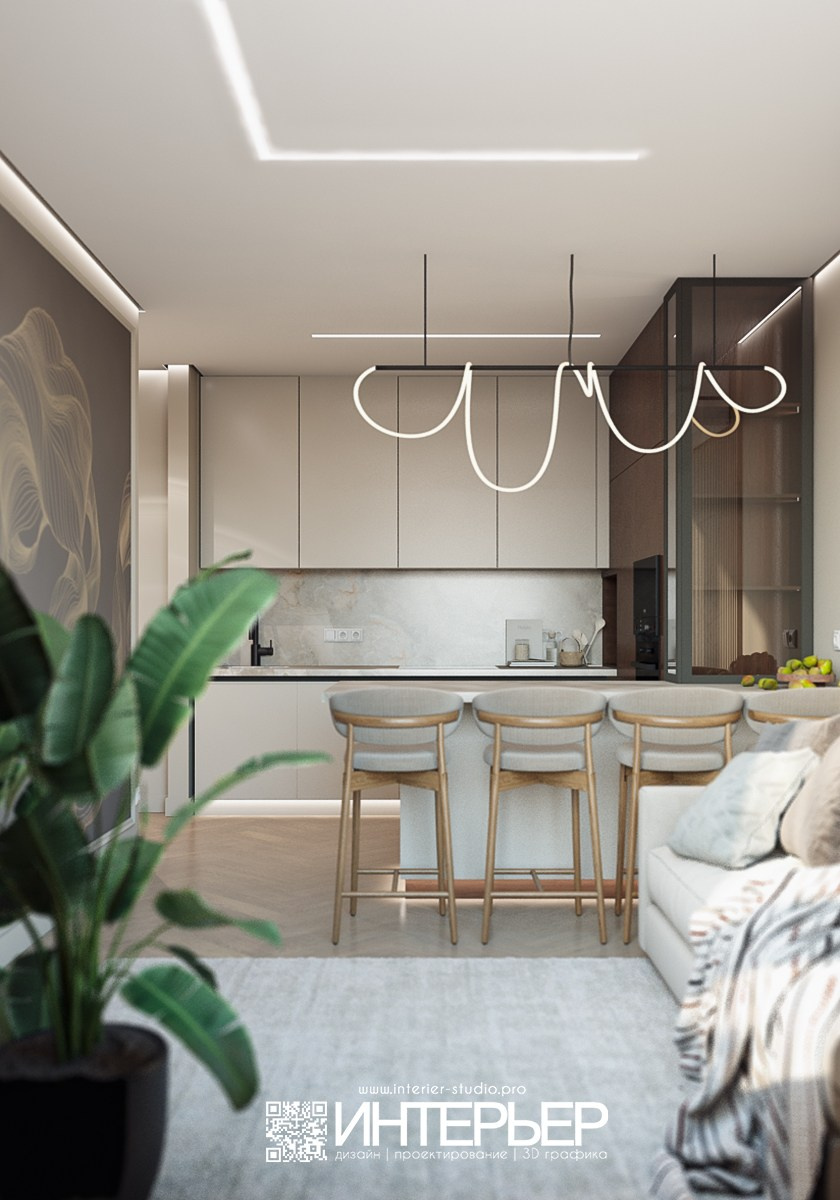 Дизайн интерьера и 3D визуализация кухни светло-бежевый интерьер г. Кисловодск