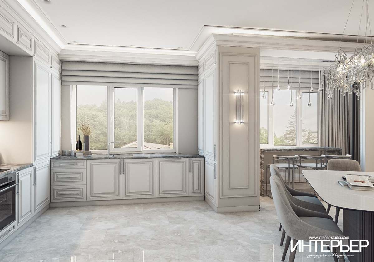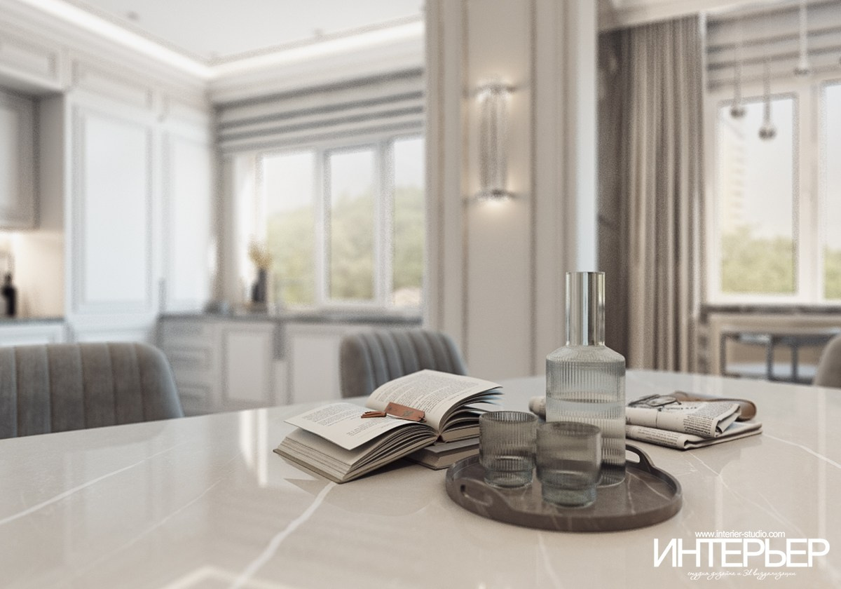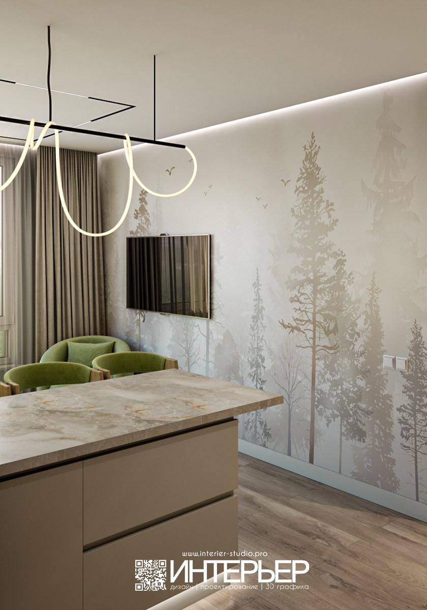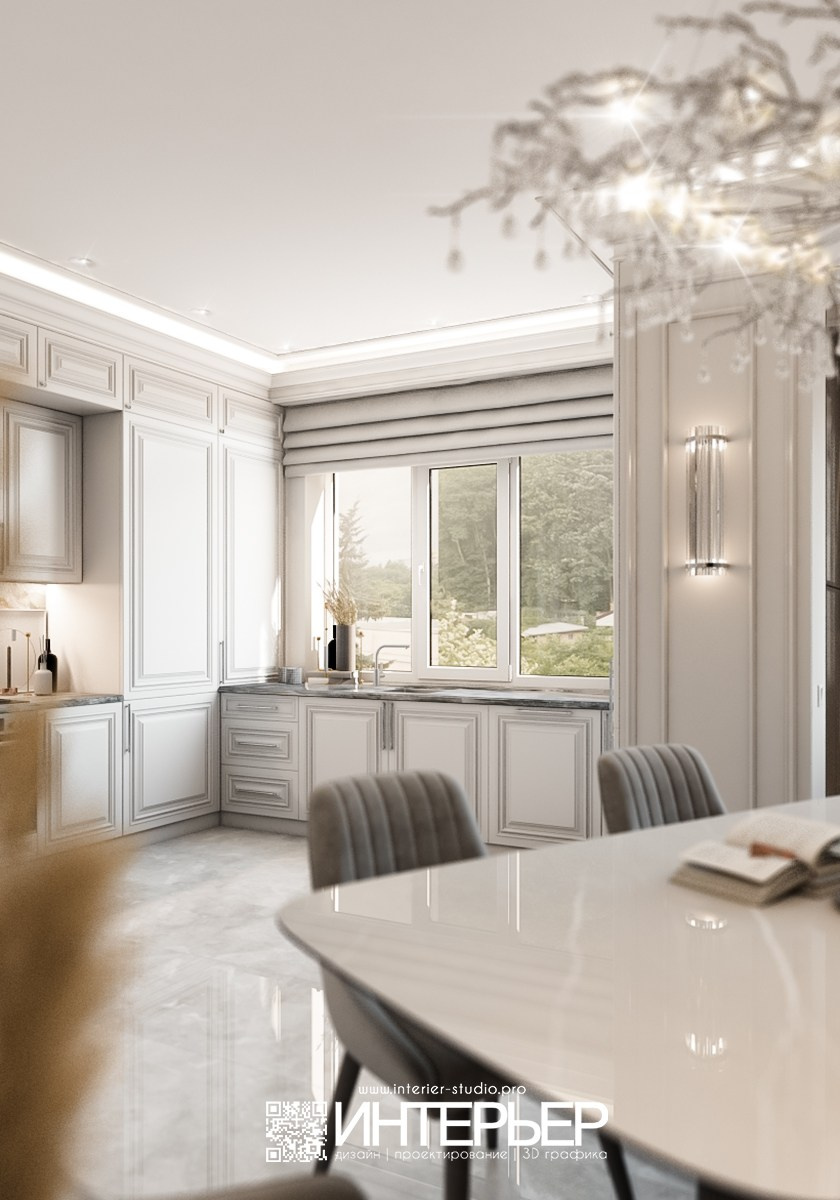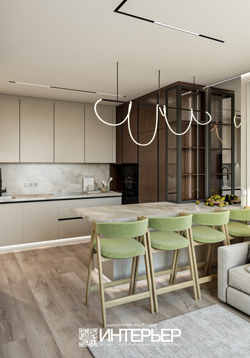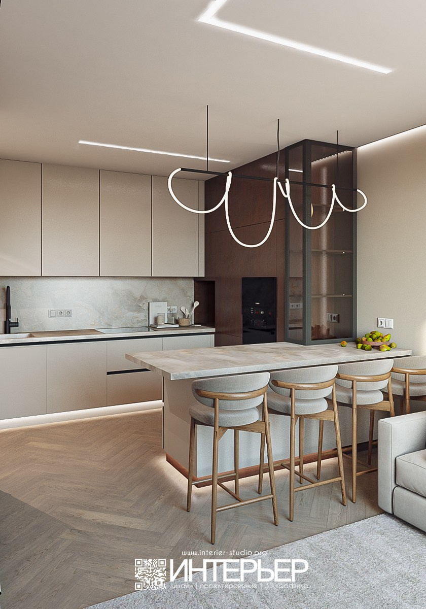 Дизайн интерьера и 3D визуализация кухни светло-бежевый интерьер г. Кисловодск