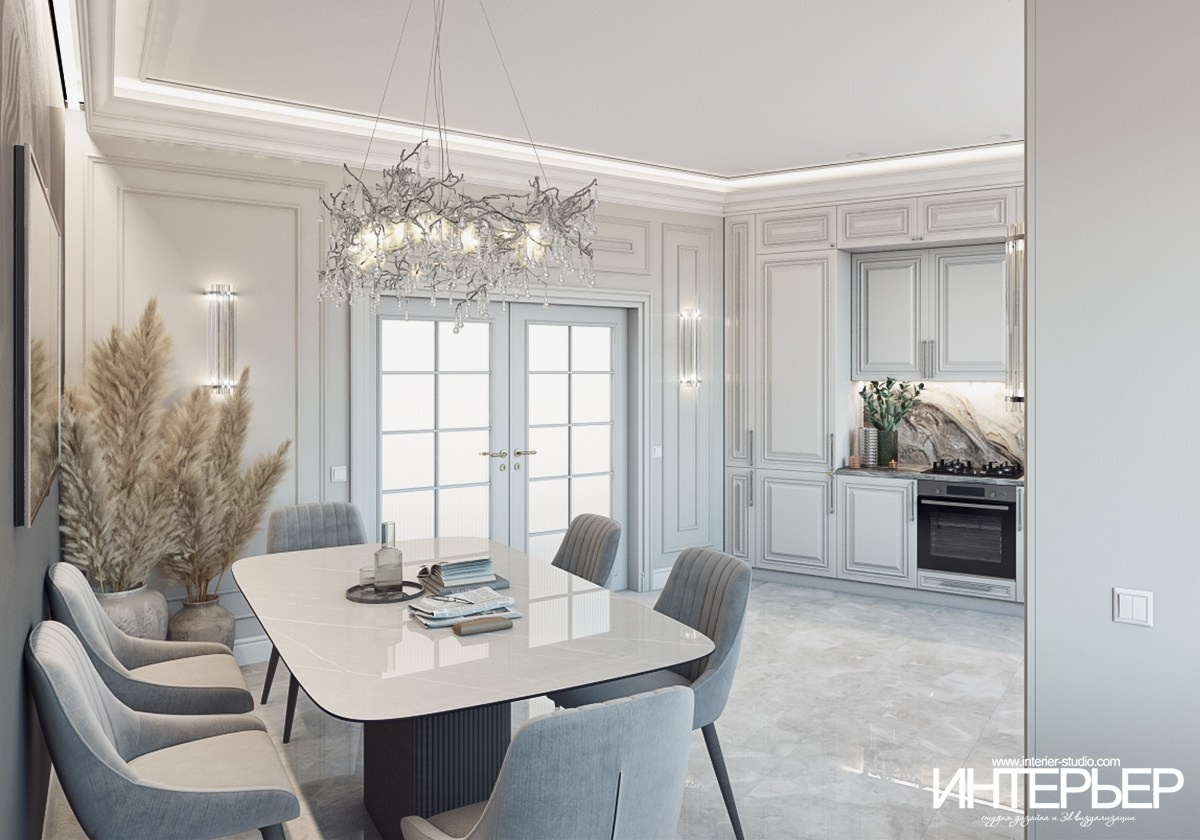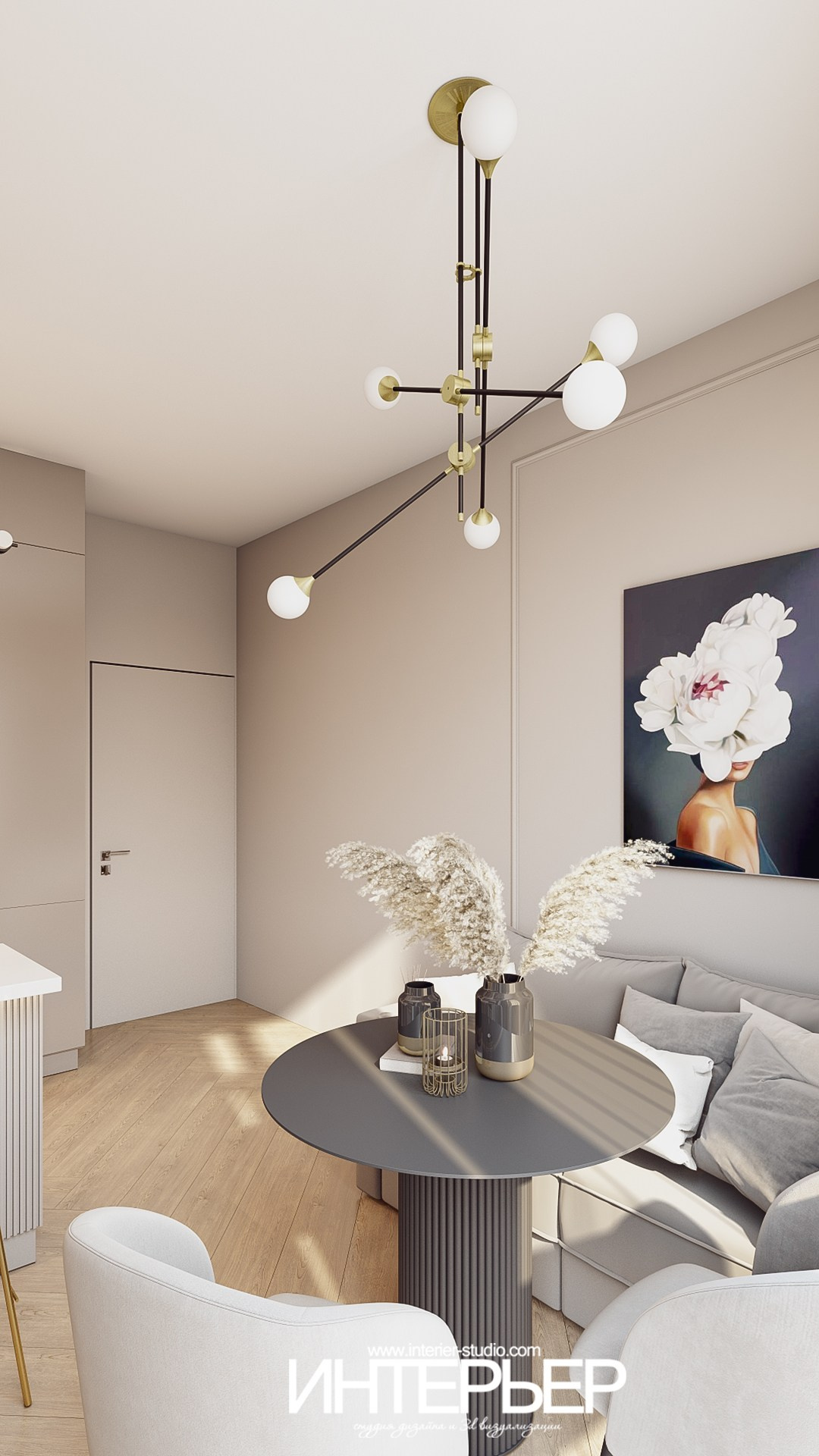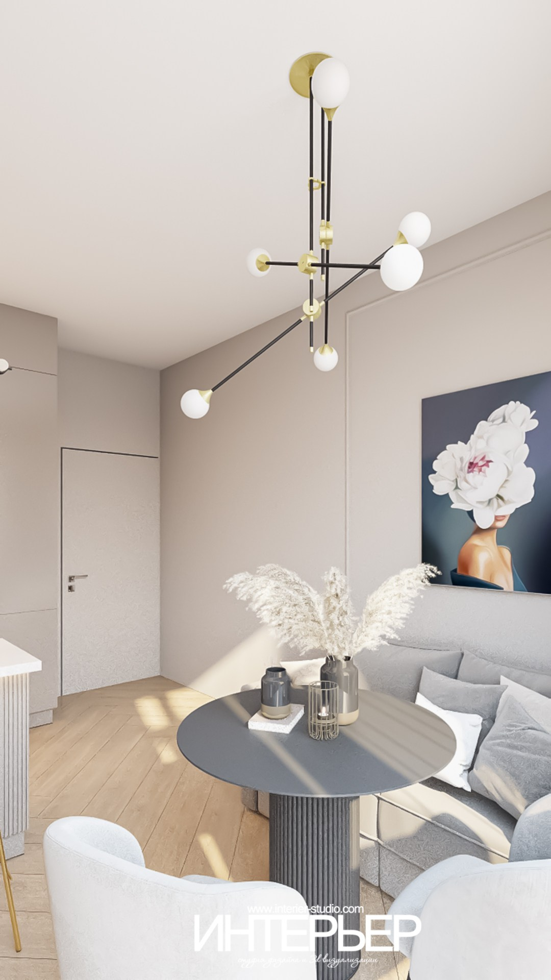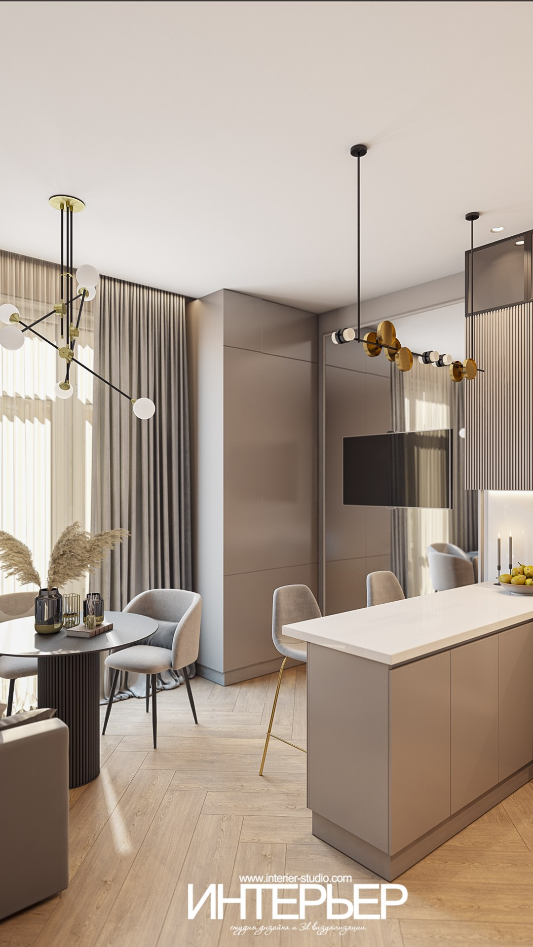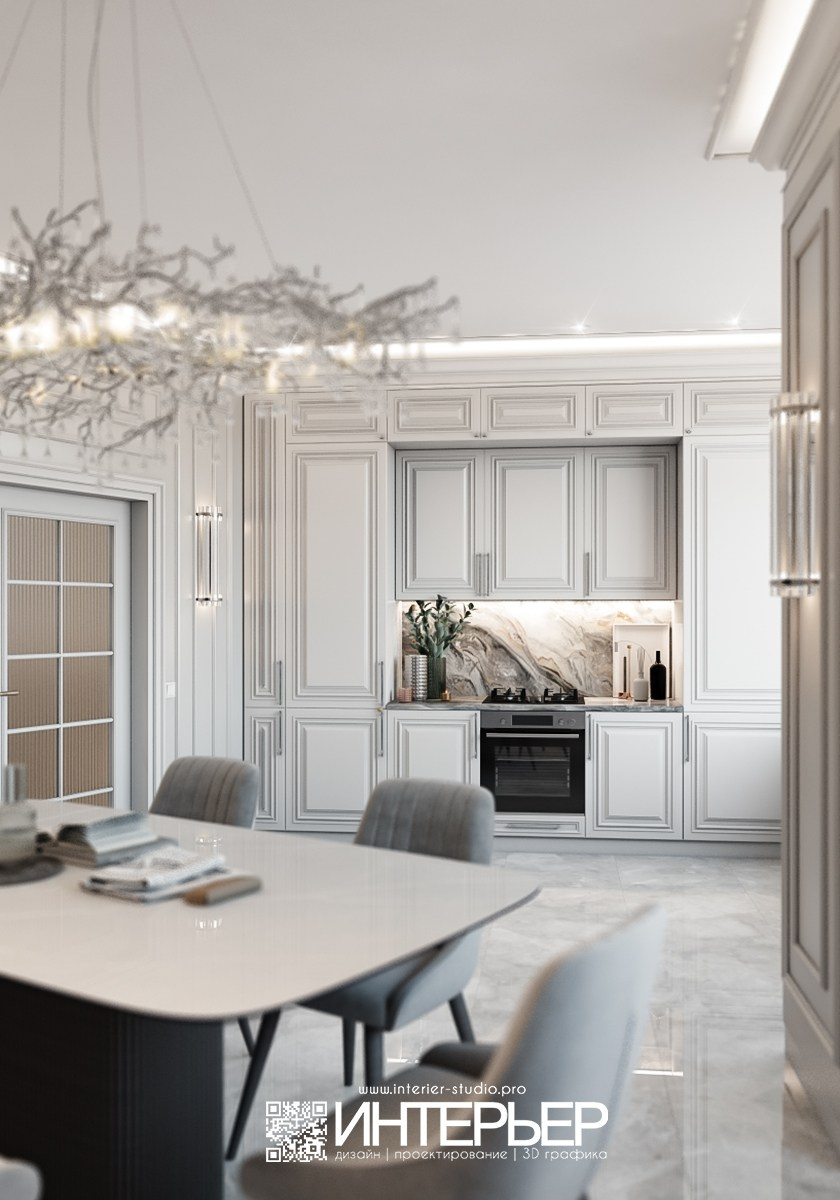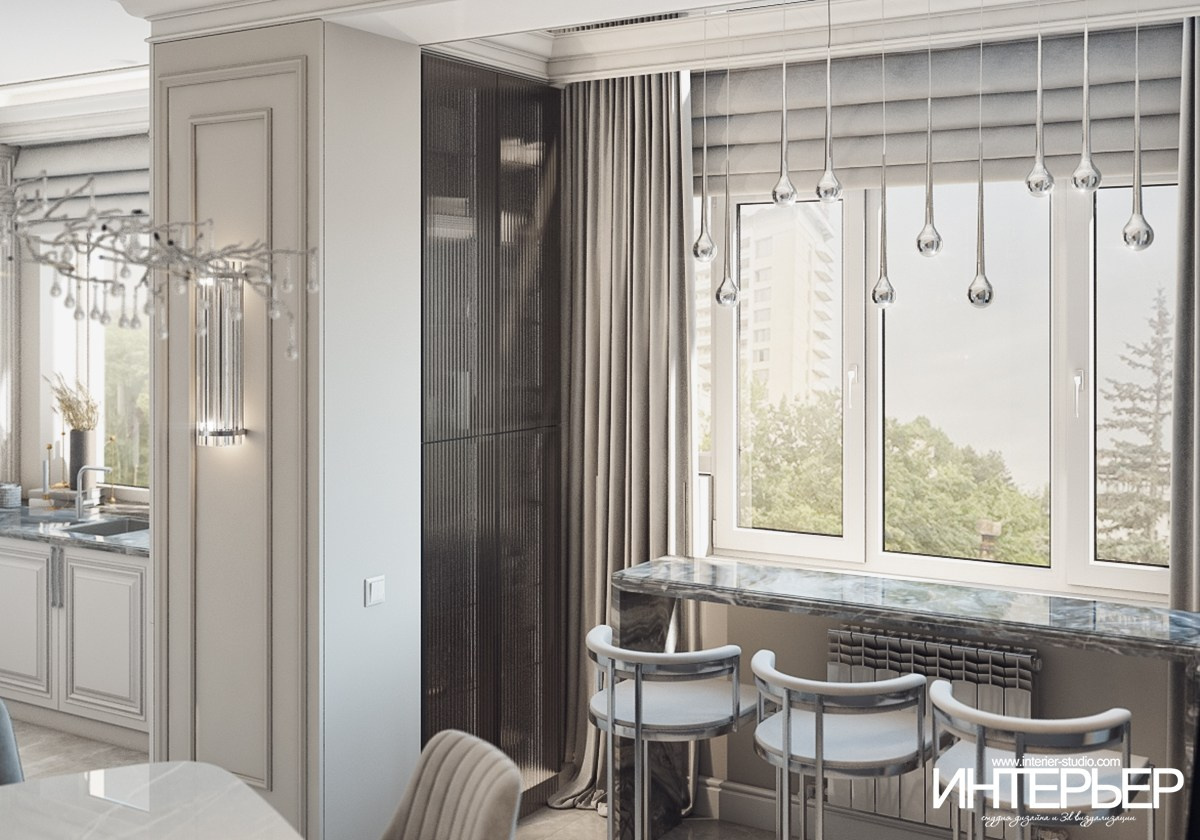 Дизайн интерьера и 3D визуализация кухни светло-бежевый интерьер г. Кисловодск