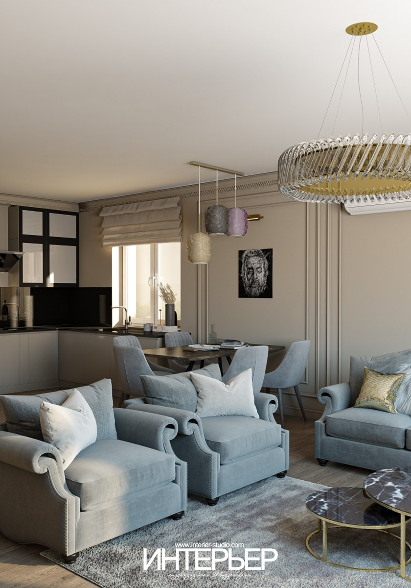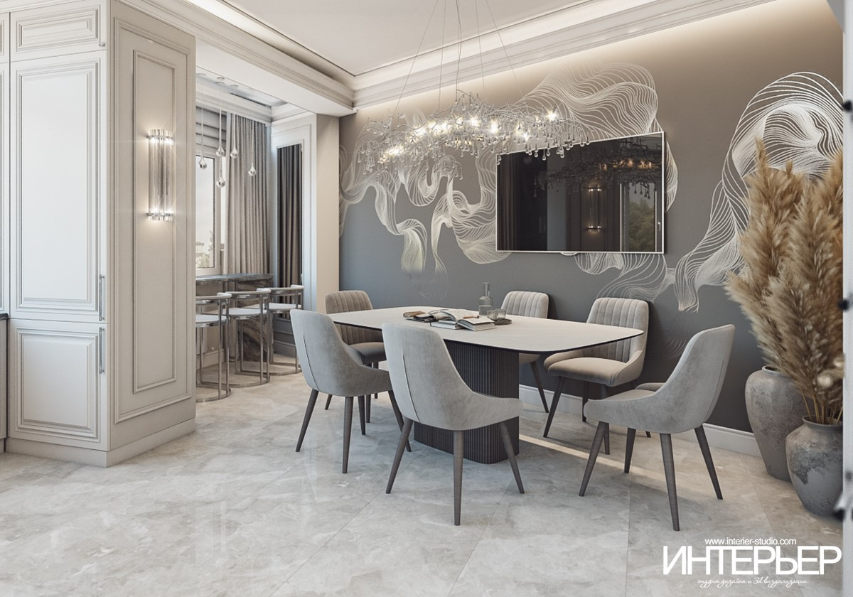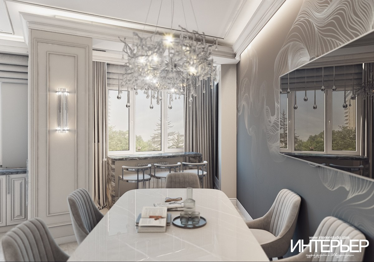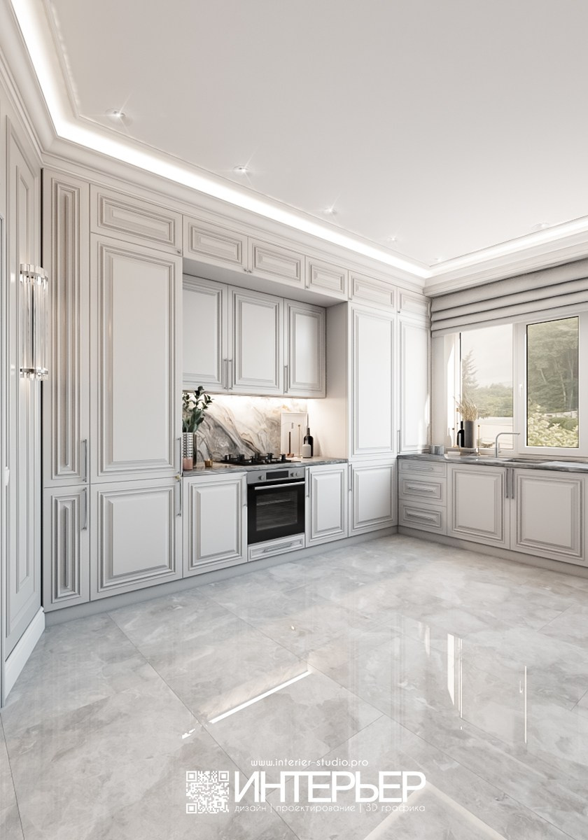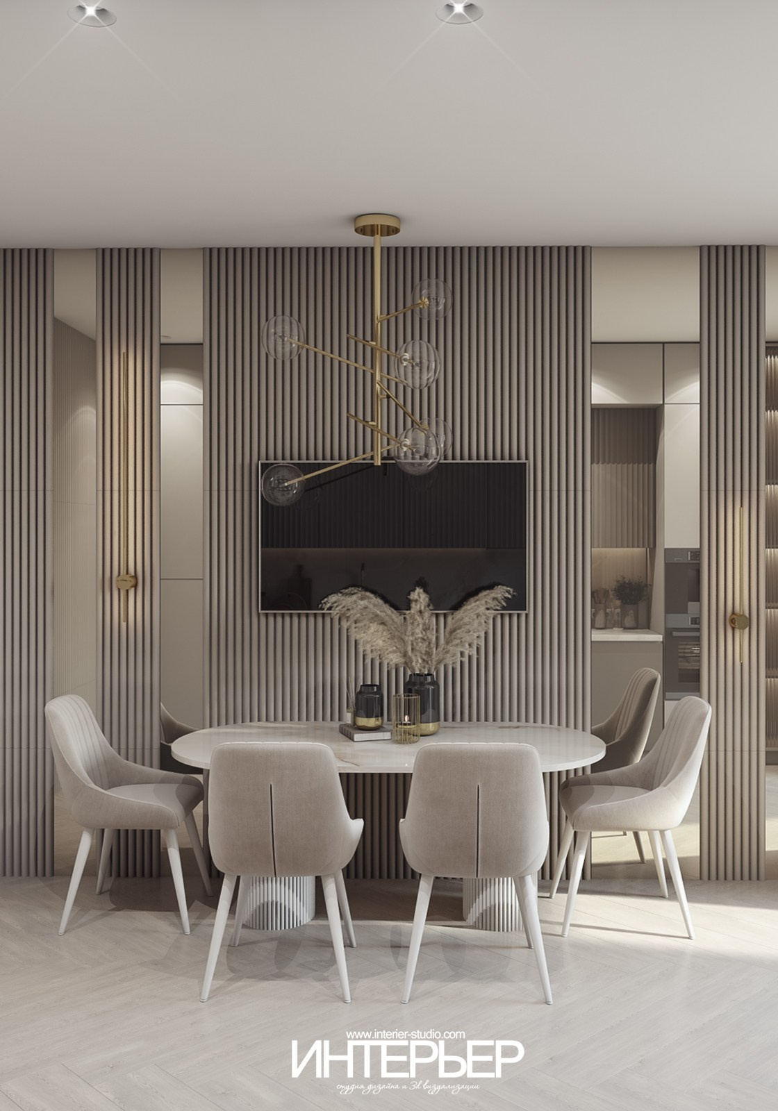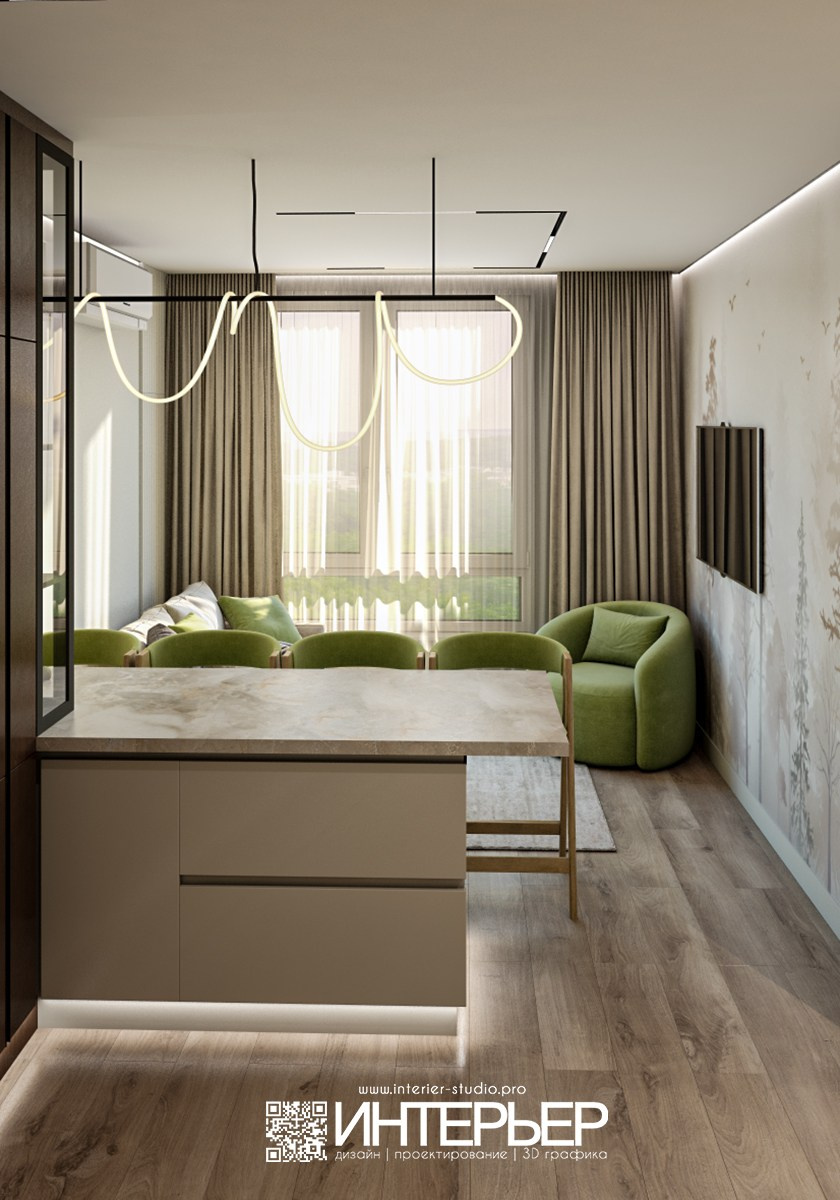 Дизайн интерьера и 3D визуализация кухни светло-бежевый интерьер г. Кисловодск