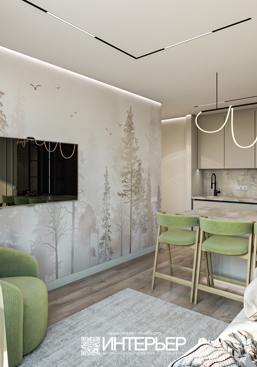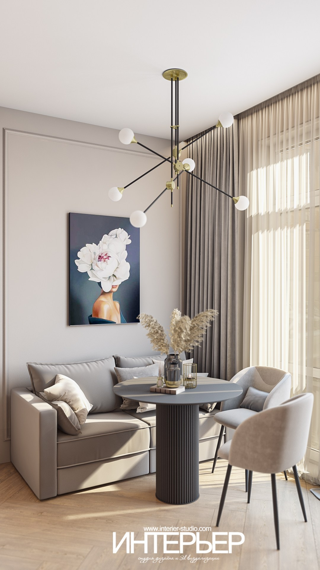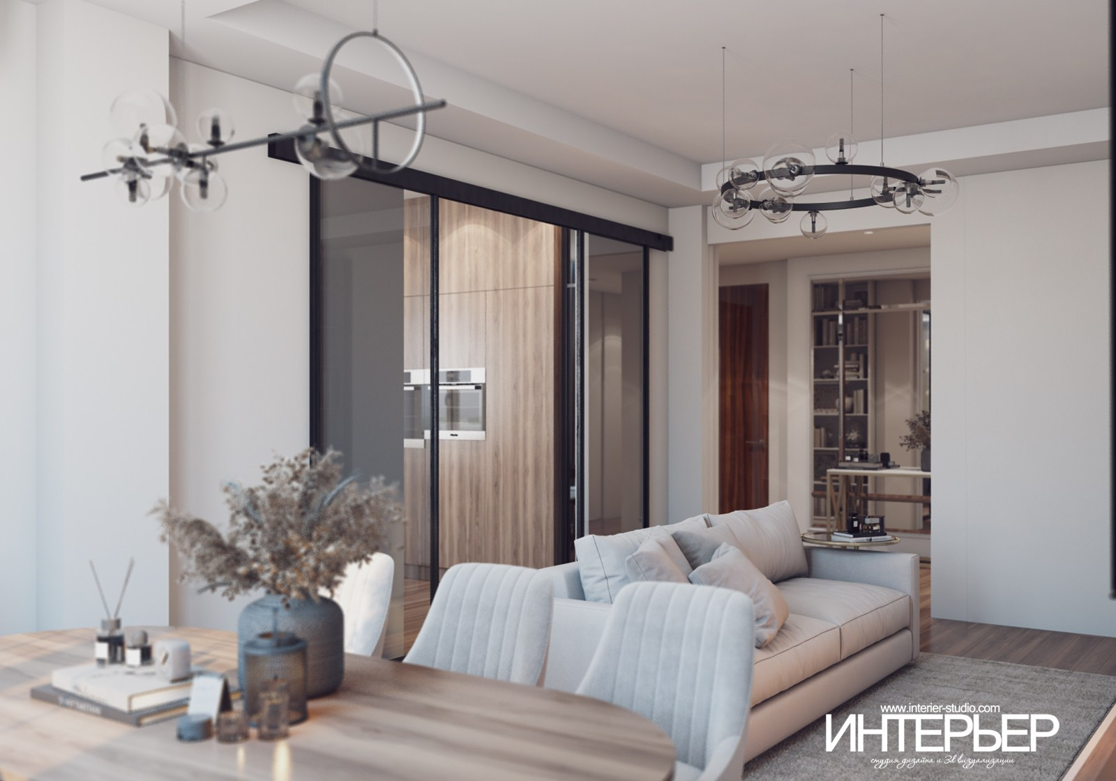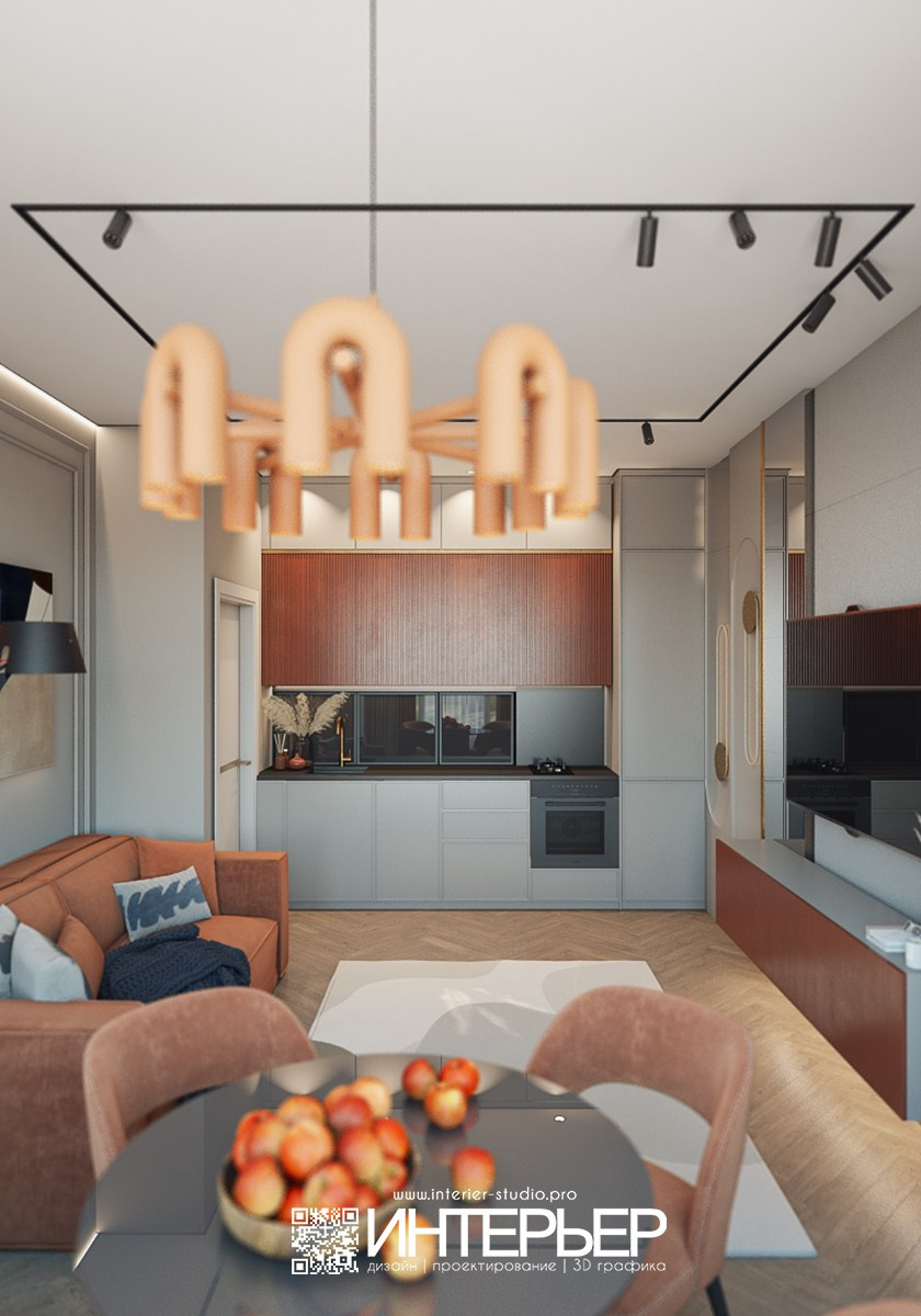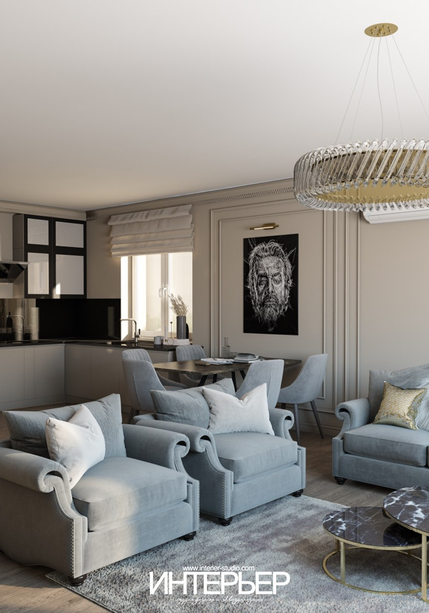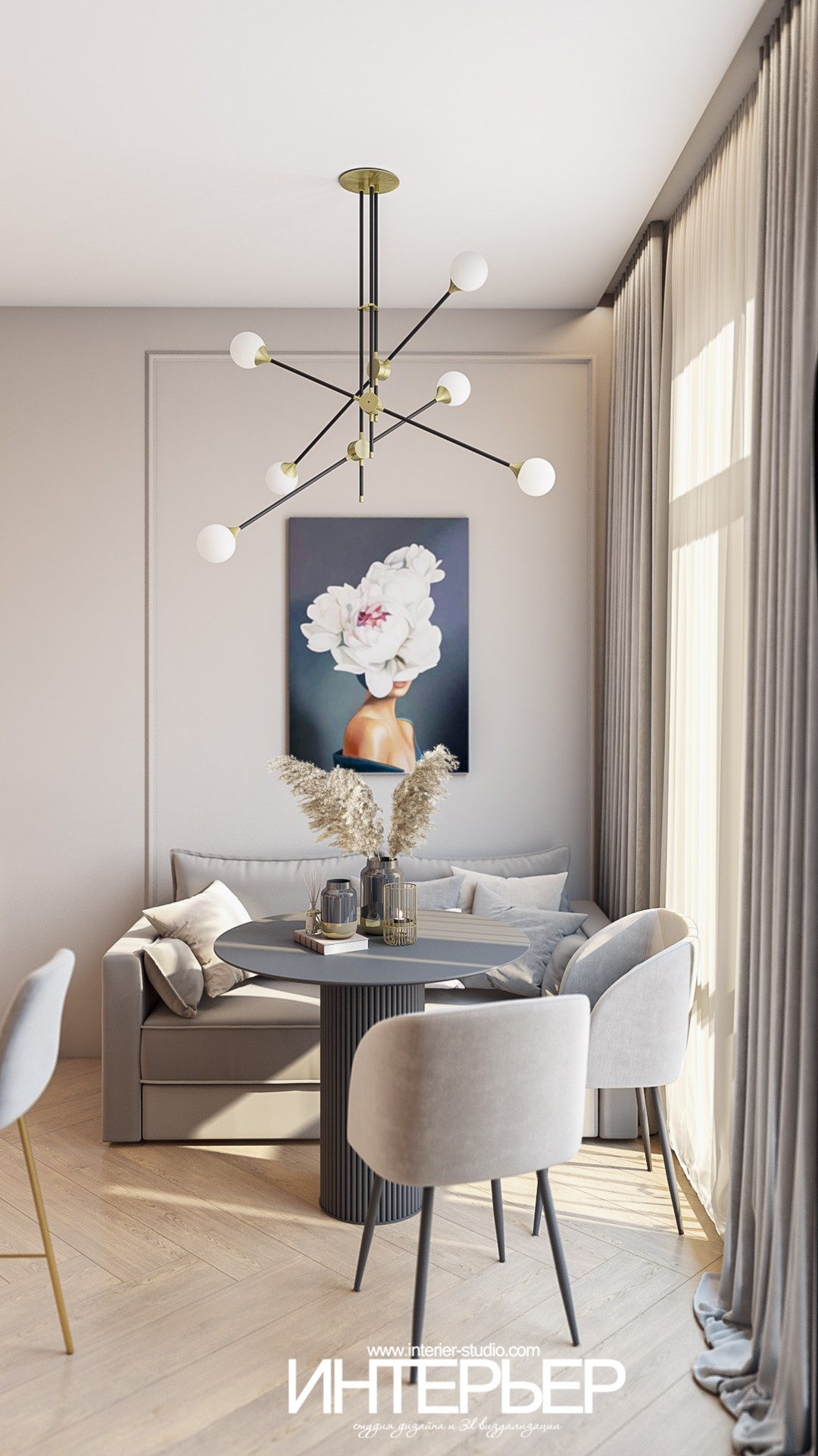 Дизайн интерьера и 3D визуализация кухни светло-бежевый интерьер г. Кисловодск