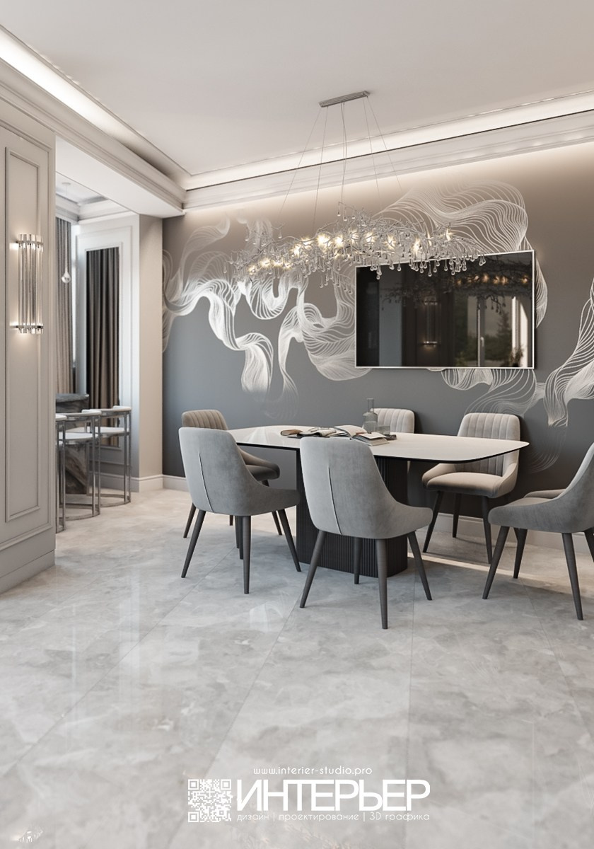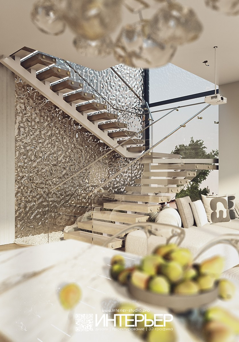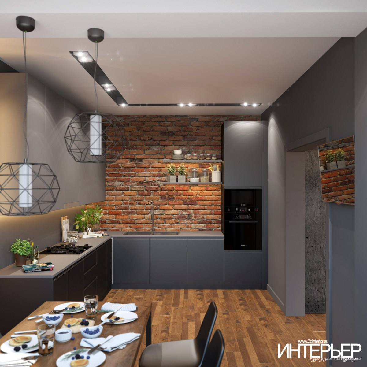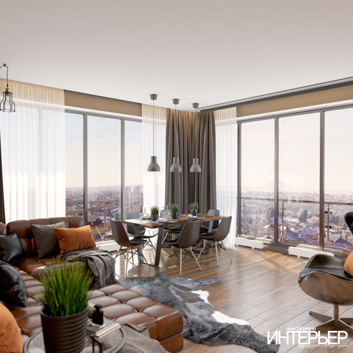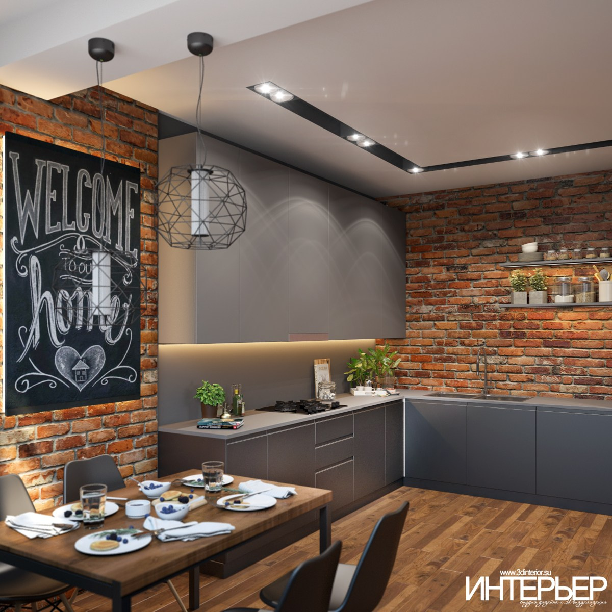 Дизайн интерьера и 3D визуализация кухни светло-бежевый интерьер г. Кисловодск