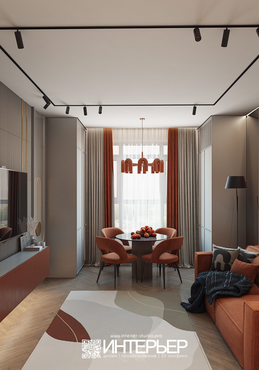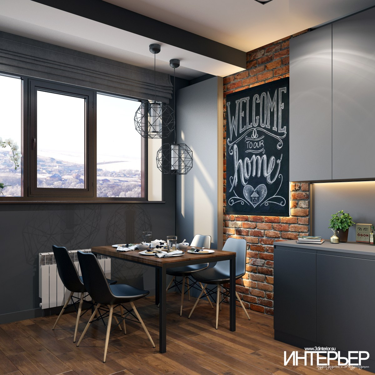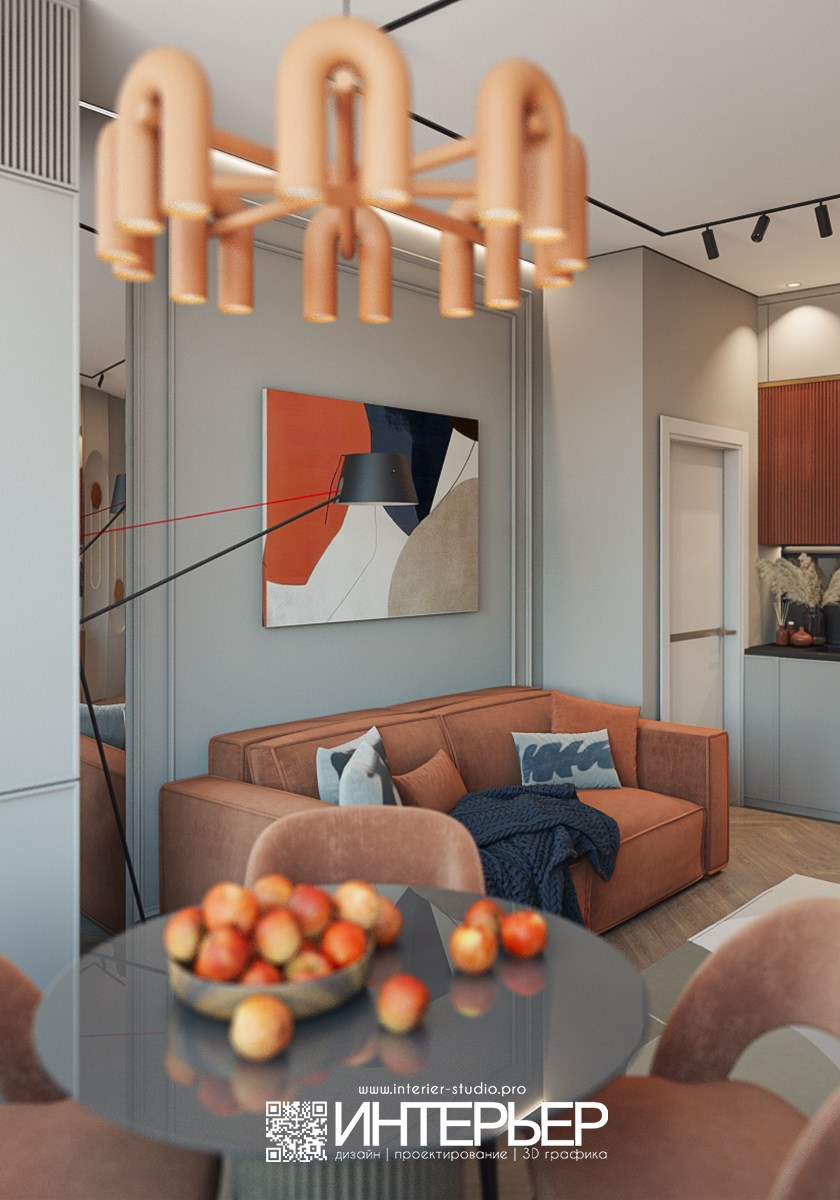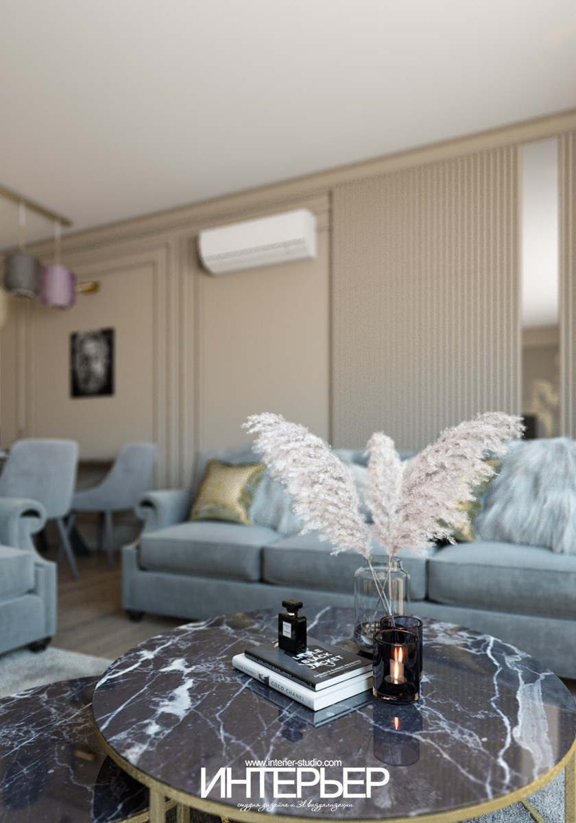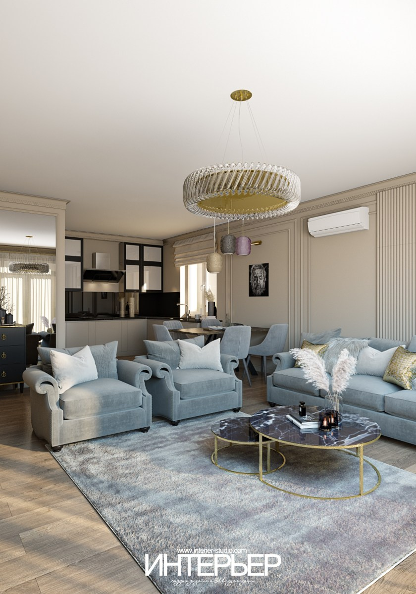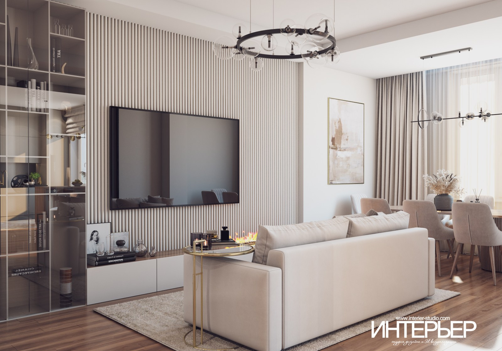 Дизайн интерьера и 3D визуализация кухни светло-бежевый интерьер г. Кисловодск